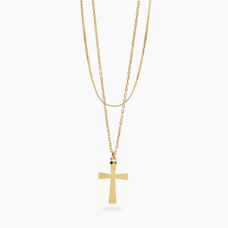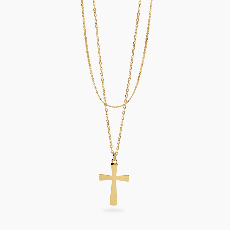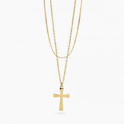 Descrizione: Girocollo in acciaio 316L, lunghezza regolabile da 38 a 43 cm, con catene serpentina e forzatina diamantata, pendente croce. Dimensioni: serpentina 1.3 mm, forzatina 1.8 mm, croce 17.5x25 mm