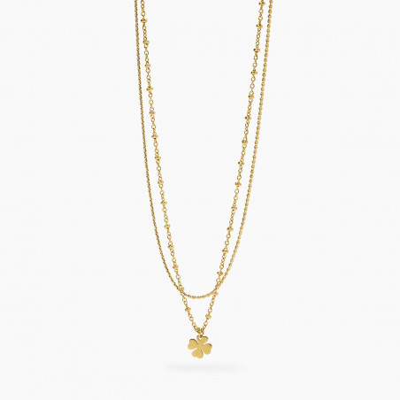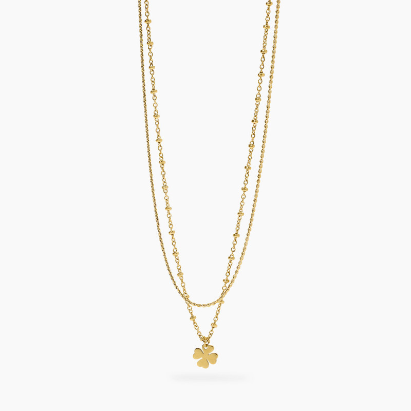 Descrizione: Girocollo in acciaio 316L, lunghezza regolabile da 38 a 43 cm, con catene rolò e serpentina, pendente quadrifoglio. Dimensioni: rolò 1.6 mm, serpentina 1.3 mm, quadrifoglio 8x8 mm