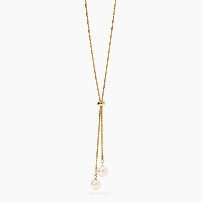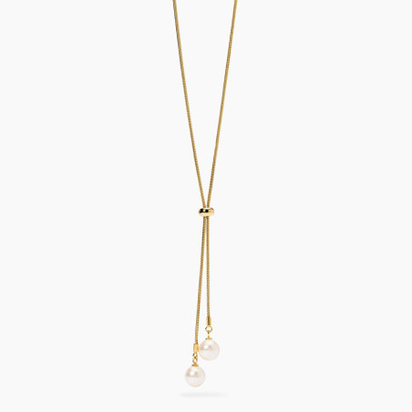 Descrizione: Collana in acciaio 316L, lunghezza 70 cm, fi interno 34 cm, con catena snake, slider e pendenti con perle conchiglia. Dimensioni: catena 1.2 mm, slider fi 5.9 mm, perle conchiglia fi 8 mm