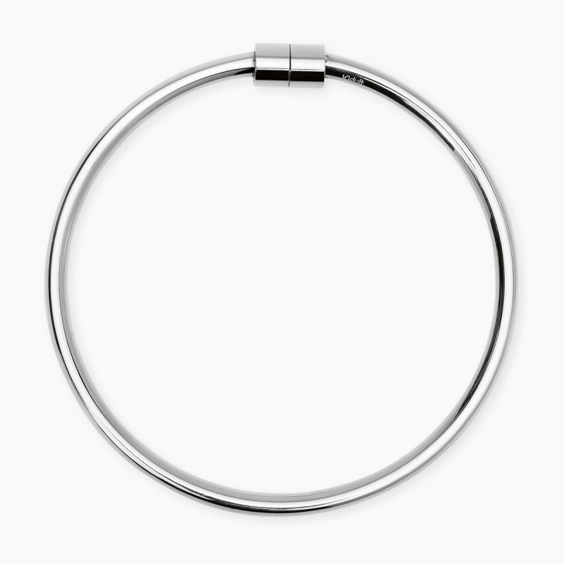 Descrizione: Bracciale bangle in acciaio 316L con chiusura calamitata. Dimensioni: fi interno 6 cm, esterno 7 cm
