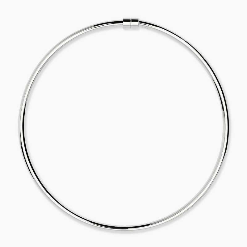 Descrizione: Girocollo in acciaio 316L con chiusura magnetizzata. Dimensioni: fi interno 43 cm, esterno 44 cm, tubo fi 5 mm