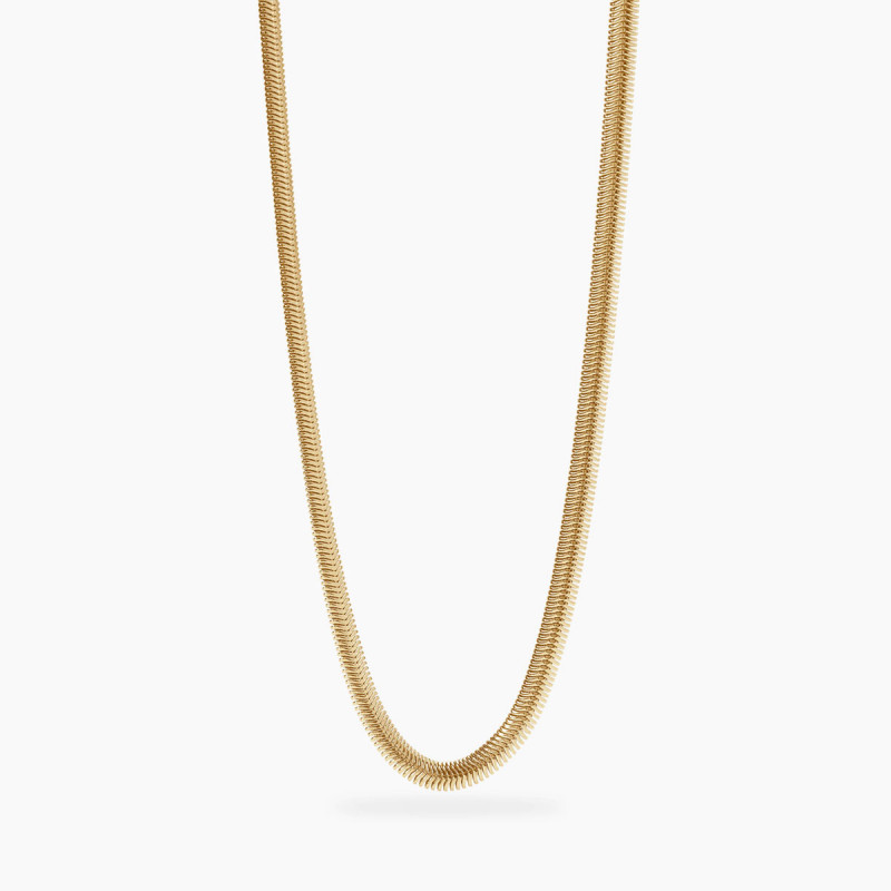 Descrizione: Collana in acciaio 316L, lunghezza 50 cm, con catena snake. Dimensioni: larghezza catena 4 mm