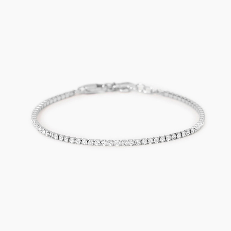 Descrizione: Bracciale in acciaio 316L, lunghezza regolabile da 18 a 20.5 cm, con cristalli. Dimensioni: pietre fi 2 mm