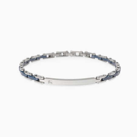 Descrizione: Bracciale in acciaio 316L, lunghezza regolabile da 19 a 21 cm, con elementi imperniati in ceramica, piastra centralee e cristallo. Dimensioni: elementi 9.9x2.1 mm, piastra 46.5x4 mm, pietra fi 2 mm