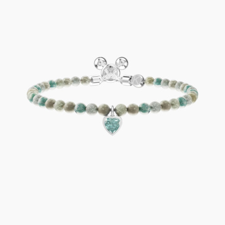 Descrizione: bracciale catena veneta e sfere con cristallo taglio cuore pendente 5 x 5 mm in acciaio anallergico 316L - Misura regolabile da 16 a 25 cm - Designed by Kidult in Italy