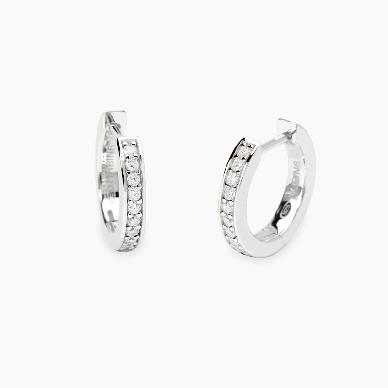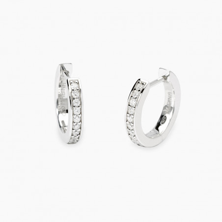 Descrizione: orecchini a cerchio in argento 925 con diamanti Lab-Grown taglio brillante colore F purezza VS - chiusura a scattino