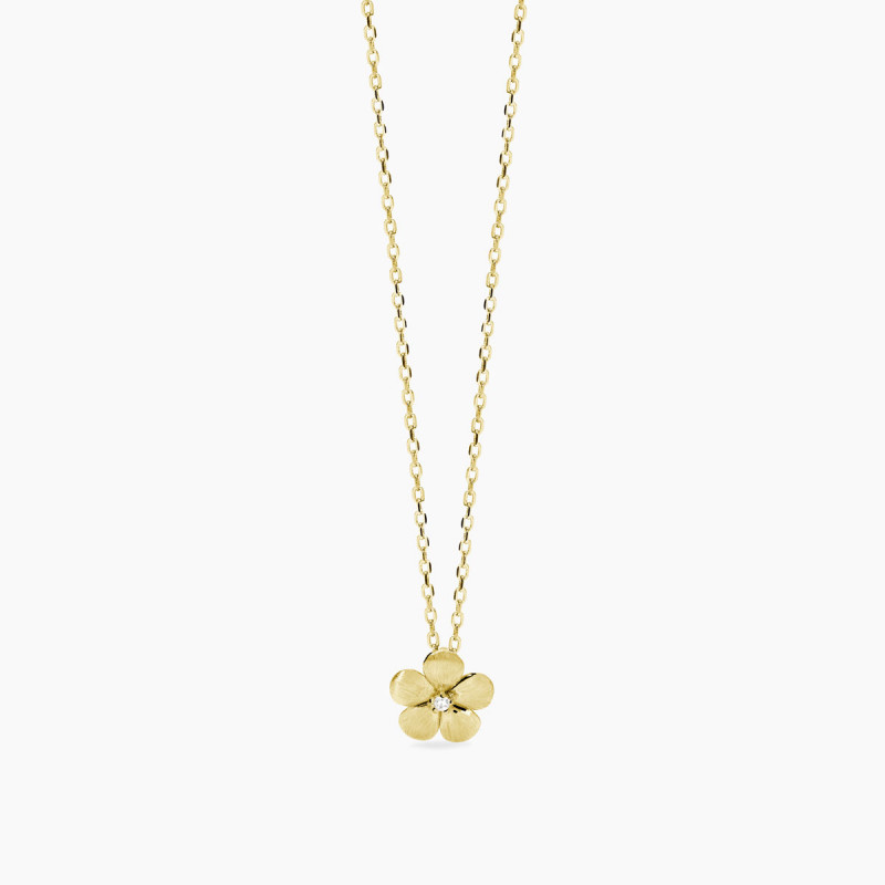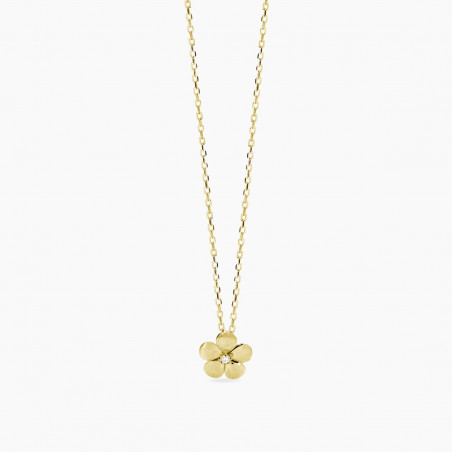 Descrizione: Girocollo in argento 925 con catena forzatina diamantata 1.4 mm e pendente bulinato fiore 10.8x10.8 mm con zirconi fi 2 mm, lunghezza regolabile da 39 a 43 cm
