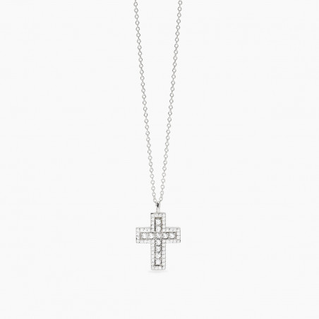 Descrizione: Girocollo in argento 925 con catena rolò 1.2 mm e pendente croce 13x17 mm con zirconi fi 1.75 e 1 mm, lunghezza regolabile da 40 a 45 cm
