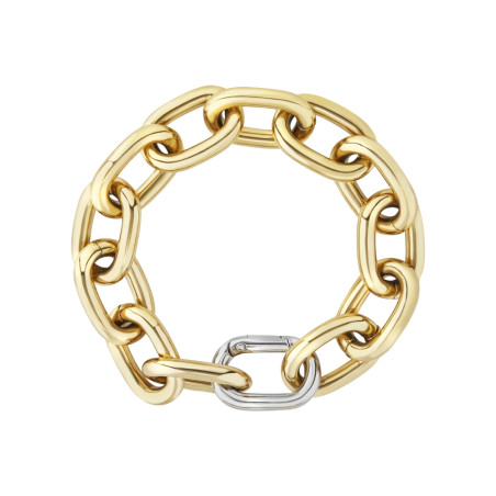 Descrizione: Bracciale maglia in alluminio lucido IP gold con maglie ovali. Chiusura in acciaio. Lunghezza massima: 22,5 cm.