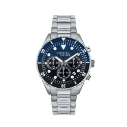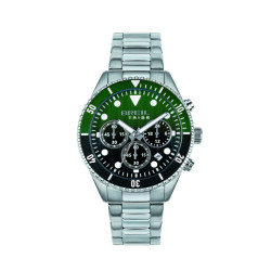 Descrizione: chrono con movimento quarzo Sunon PE902. WR 10 atm. Cassa e bracciale acciaio finitura bilux. Lunetta con disco in alluminio. Datario. Sfere con luminous. Vetro minerale. Fondello a vite. Chiusura con pulsanti.