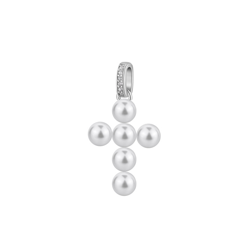 Descrizione: charm in argento 925 rodiato con perle fresh water a forma di croce