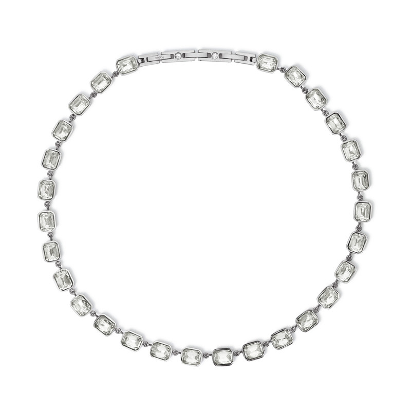 Descrizione: Girocollo in acciaio 316L, lunghezza regolabile da 39 a 42.5 cm, con cristalli ottagonali 8x6 mm e tondi fi 3 mm.