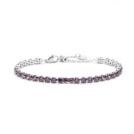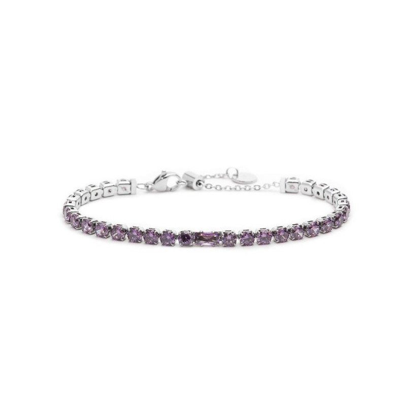 Descrizione: bracciale in acciaio con catena tennis con cubic zirconia 4 mm, con al centro un cubic zirconia taglio baguette. Lunghezza totale 19 cm regolabile tramite cursore da 19 cm a 15 cm. Chiusura con moschettone. Marlù logo tag presente all' estremità.