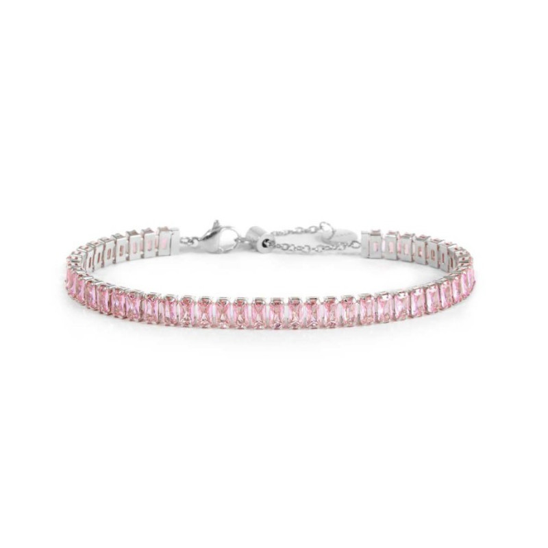 Descrizione: una cascata lucente di tennis colorati per far risplendere la tua personalità! Bracciale tennis con zirconi taglio baguette in acciaio.