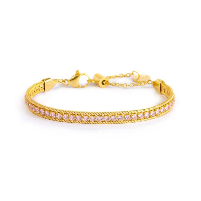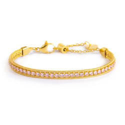 Descrizione: una cascata lucente di tennis colorati per far risplendere la tua personalità! Bracciale a triplo filo con catena tennis al centro, zirconi fi 2,5 mm e catena snake squadrata ai lati in acciaio.