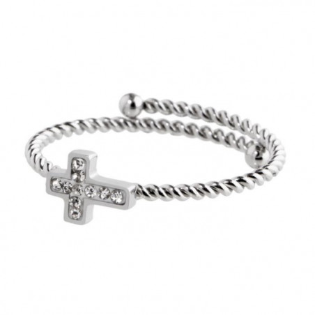 Descrizione: Anello in acciaio, ritorto, regolabile. Materiali: acciaio, cristalli
