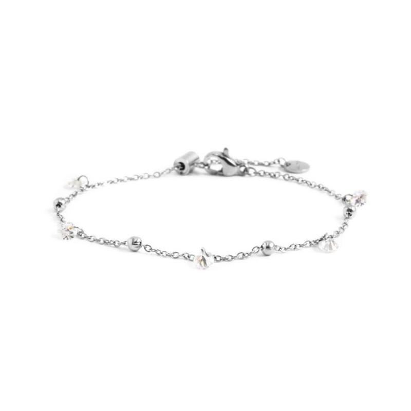 Descrizione: Bracciale con catena cross, cubic zirconia e sfere di acciaio alternati. Lunghezza totale 19 cm regolabile da 19 cm a 13 cm tramite cursore. Marlù logo tag presente all'estremità.