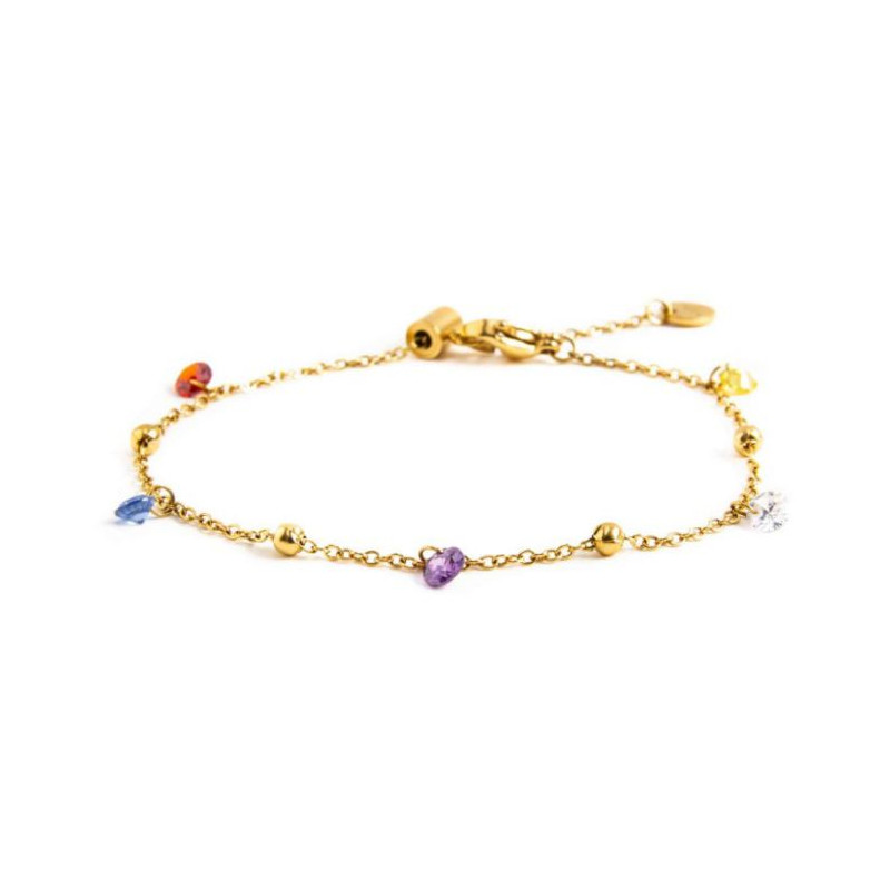 Descrizione: Bracciale con catena cross, cubic zirconia e sfere di acciaio alternati. Lunghezza totale 19 cm regolabile da 19 cm a 13 cm tramite cursore. Marlù logo tag presente all'estremità.