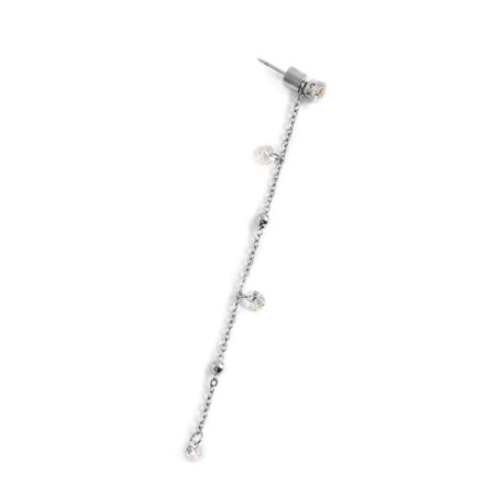 Descrizione: Mono orecchino con cubic zirconia, con pendente con catena cross, con cubic zirconia e sfere di acciaio alternati. Lunghezza totale 7,3 cm. Pendente removibile.