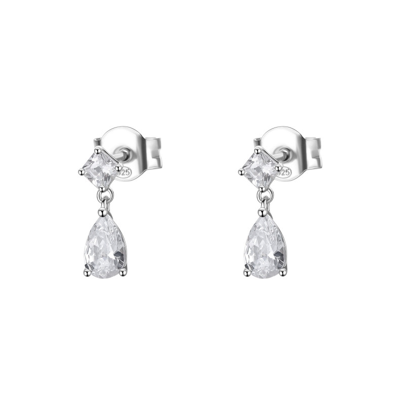 Descrizione: orecchino mono a semicerchio in argento 925 rodiato e cubic zirconia taglio cushion