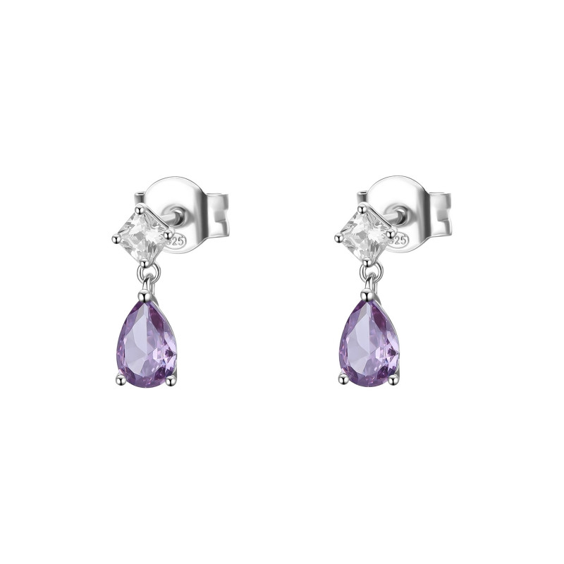 Descrizione: orecchini a lobo pendenti in argento 925 rodiato con cubic zirconia taglio goccia e taglio square