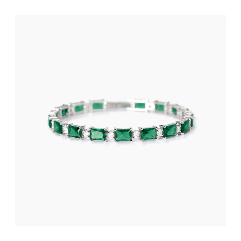 Descrizione: Bracciale da donna in argento 925 rodiato con zirconi taglio tondo e baguette.