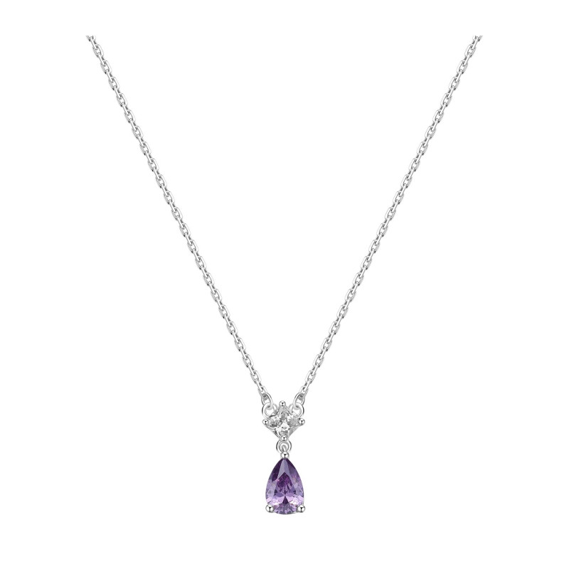 Descrizione: girocollo con catena maglia rolò in argento 925 rodiato e pendente con cubic zirconia taglio goccia e taglio square