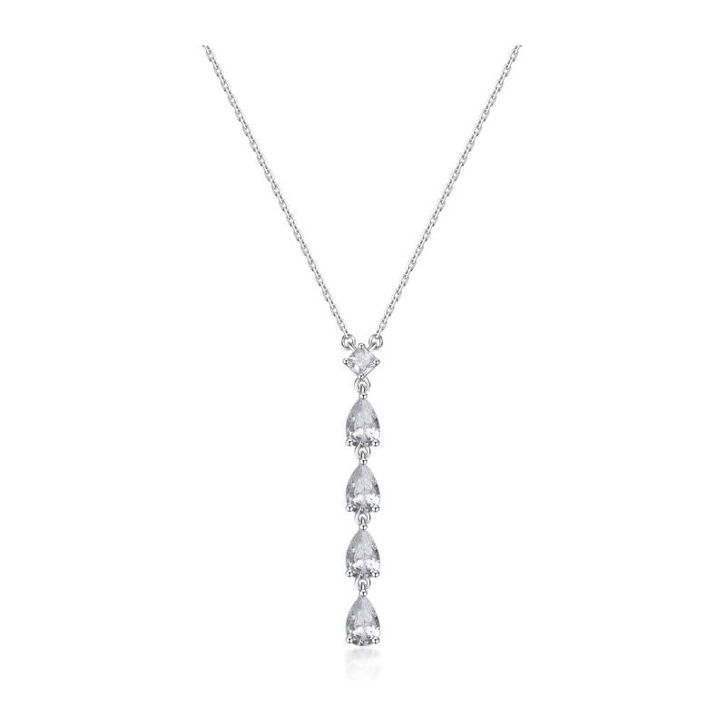 Descrizione: girocollo con catena maglia rolò in argento 925 rodiato e pendente con cubic zirconia taglio goccia e taglio square
