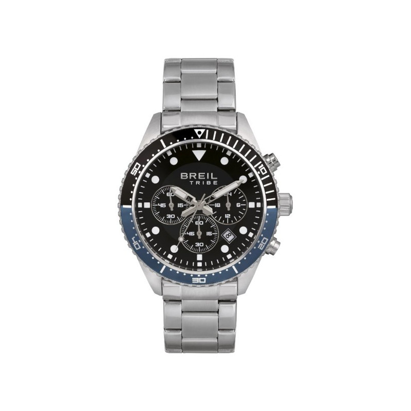 Descrizione: movimento quarzo TMI VD53. WR 10 atm. Cassa e bracciale acciaio satinato. Lunetta in acciaio con disco in alluminio. Contatori e sfere con luminous. Datario. Vetro minerale. Corona e fondello a vite. Chiusura con pulsanti e fermaglio di sicurezza.