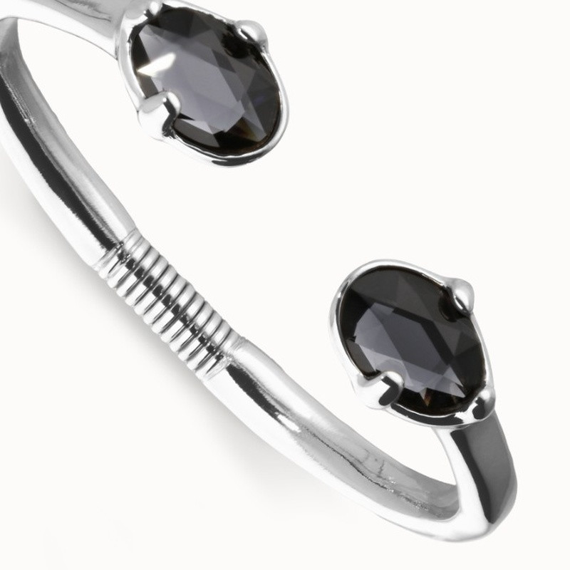 Descrizione: bracciale rigido placcato in argento con due cristalli ovali neri sfaccettati. Scopri l’equilibrio perfetto con il nostro bracciale aperto placcato in argento della collezione Ser Deslumbrante. Questo bracciale di design è la massima espressione della dualità: una struttura robusta e in ferro si apre per incorniciare due enigmatici cristalli Swarovski in nero azabache.