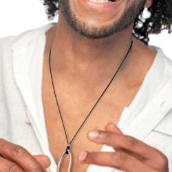 Descrizione: collana con cordino nero cerato con pendente centrale bicolore ad anello ovale in acciaio e acciaio pvd oro con misura 4,5*1,9 cm. Lunghezza totale 90 cm regolabile tramite nodi scorsoi.