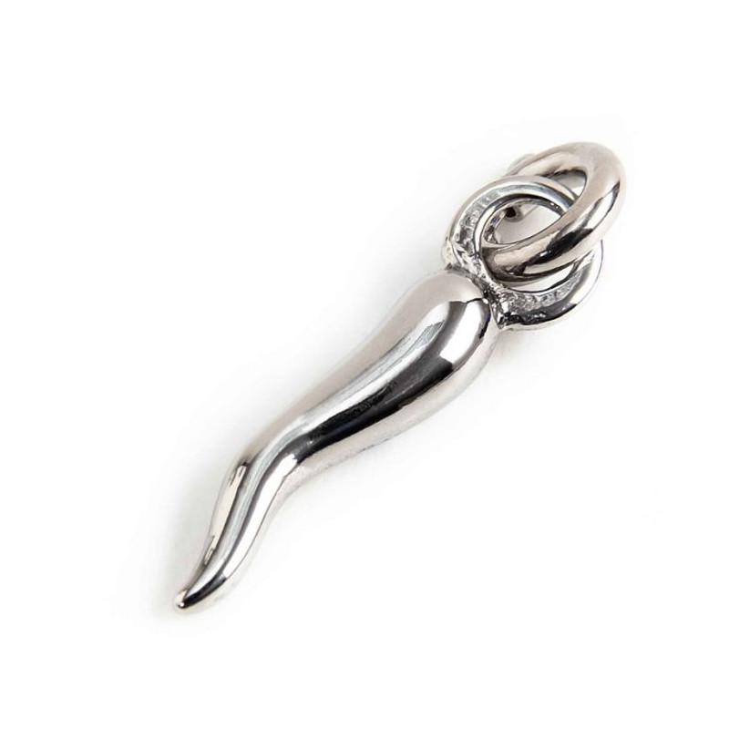 Descrizione: ciondolo a forma di cornetto con moschettone in acciaio