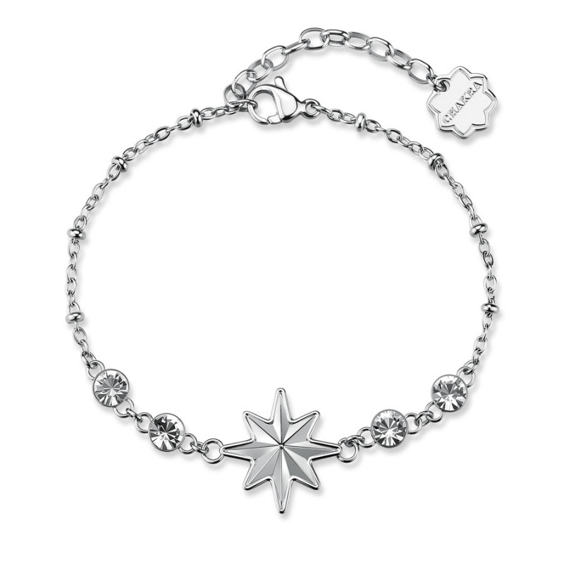 Descrizione: bracciale in acciaio 316L con rosa dei venti e cristalli