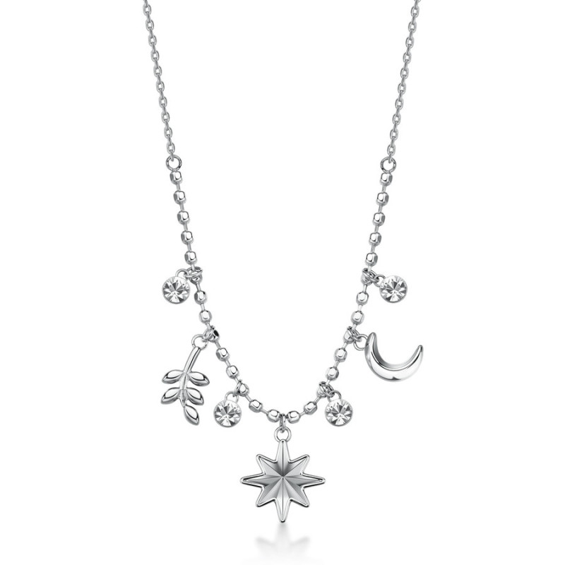 Descrizione: girocollo in acciaio 316L con pendenti a forma di rosa dei venti, ramo ulivo, luna e cristalli