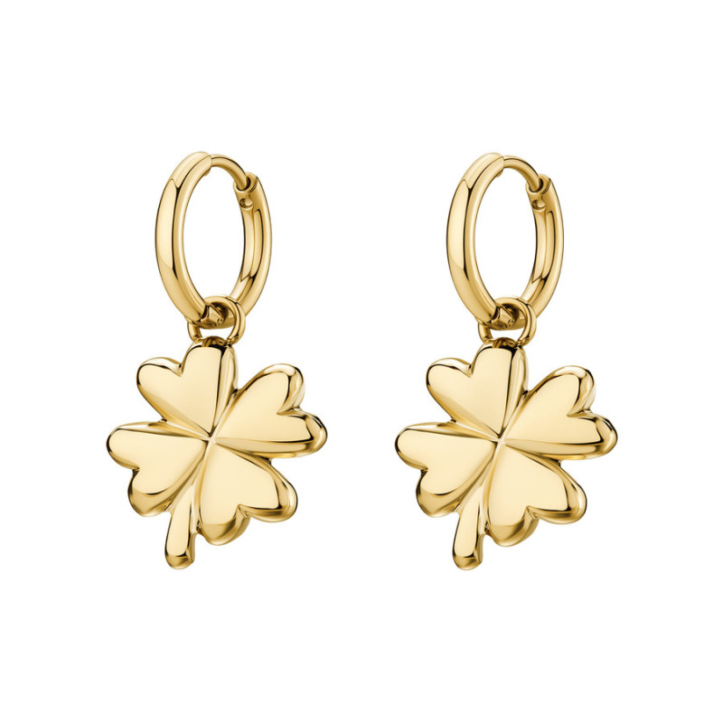 Descrizione: orecchini in acciaio 316L - chiusra a cerchio - pendente quadrifoglio