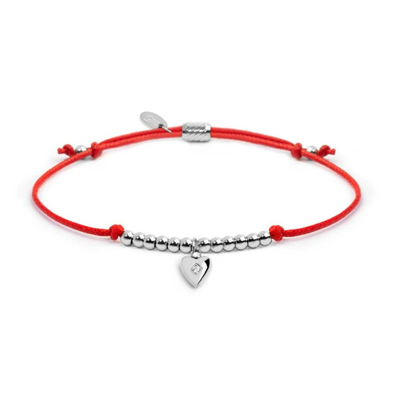Descrizione: Bracciale con cordino nero o rosso con al centro sfere e pendente in acciaio o acciaio pvd oro a forma di cuore con un cubic zirconia bianco. Regolabile con due nodi scorsoi fino a diametro 8 cm. Tag ovale con inciso da un lato il logo Marlù, dall'altro la scritta "FOLLOW YOUR" e un cuore.