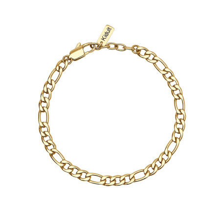 Descrizione: Bracciale regolabile con catena figaro in acciaio. Dimensione catena: 5 mm. Misura regolabile, lunghezza da 19 a 21 cm. Materiale: Acciaio 316L