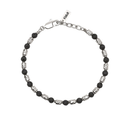 Descrizione: Bracciale regolabile con cubetti martellati in acciaio e malachite sintetica o pietra lavica. Dimensione cubetti: 4,3x4,3 mm. Diametro pietre: 4 mm. Misura regolabile, lunghezza da 19 a 21 cm. Materiale: Acciaio 316L, pietru dure naturali o sintetiche