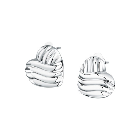 Descrizione: orecchini a lobo con cuori a trama ondulata in acciaio
