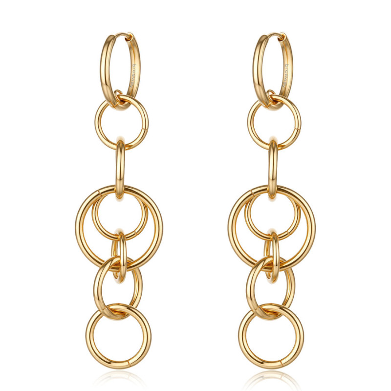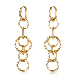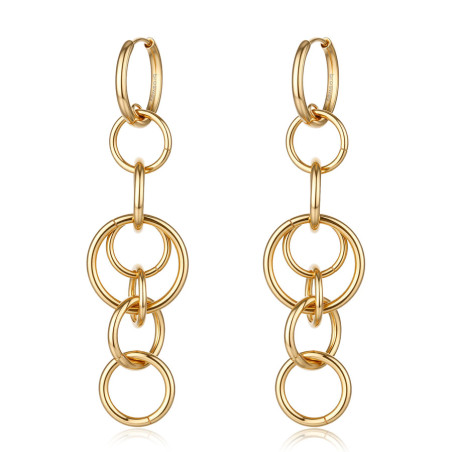 Descrizione: Orecchini pendenti in acciaio 316L, finitura pvd colore oro, con cerchi intersecati