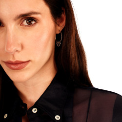 Descrizione: orecchini a cerchio con cuore pendente in acciaio lucido. Chiusura a baionetta.