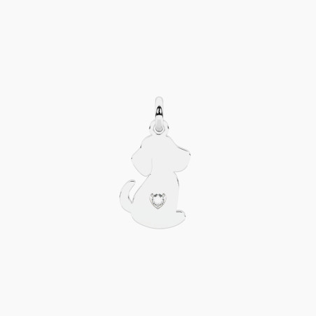 Descrizione: Ciondolo in acciaio 316L e/o PVD giallo cane con cristallo. Dimensioni: ciondolo 10.4x16.2 mm, pietra fi 1.75 mm