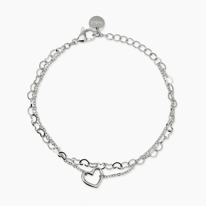 Descrizione: Bracciale in acciaio 316L, lunghezza regolabile da 16 a 19 cm, con catene a cuori e rolò, elemento cuore. Dimensioni: larghezza catene 4 e 1.6 mm, cuore 10x9 mm