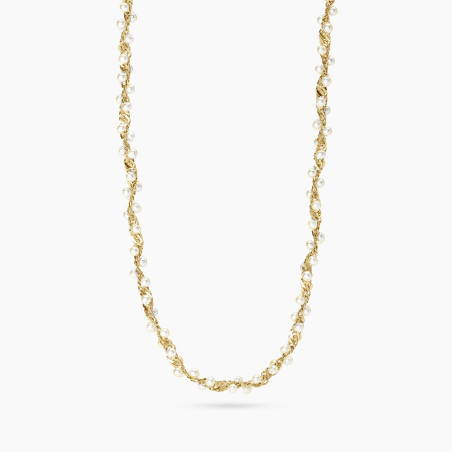 Descrizione: Girocollo in acciaio 316L e/o PVD giallo, lunghezza regolabile da 40 a 45 cm, con catena groumette piatta e perle conchiglia. Dimensioni: larghezza catena 2.5 mm, perle conchiglia fi 2 mm