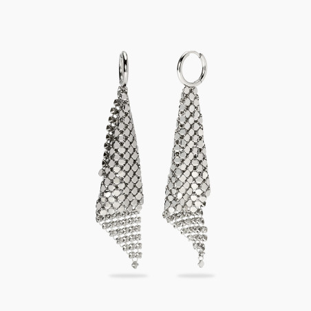 Descrizione: Orecchini in acciaio 316L e/o PVD giallo, lunghezza totale orecchino 8.3 cm, con catena disco. Dimensioni: larghezza catena 35 mm, fi esterno cerchio 12 mm