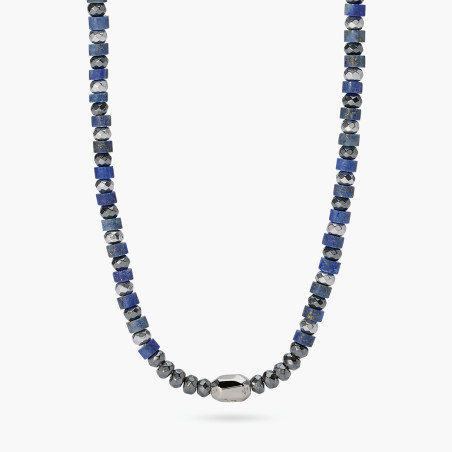 Descrizione: Collana in acciaio 316L, lunghezza regolabile da 45 a 50 cm, con elementi faccettati, ematite faccettata e cilindri in turchese verde. Dimensioni: centrale 8.2x5.6 mm, elementi 3.3x4 mm, pietre 3.3x4 e 2.5x4 mm