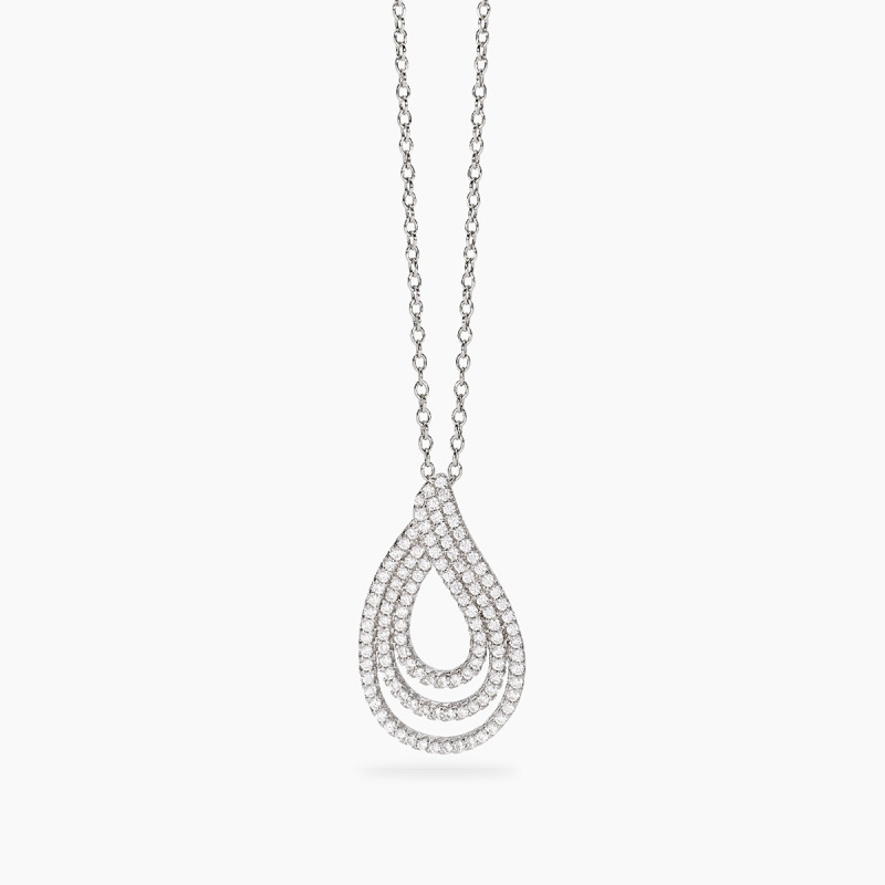 Descrizione: Girocollo in argento 925 rodiato con catena rolò 1.2 mm e pendente 13.7x23.3 mm goccia con zirconi fi 1.25 mm, lunghezza regolabile de 40 a 45 cm