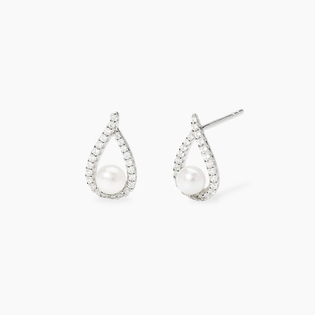 Descrizione: Orecchini in argento 925 rodiato 7.5x14 mm goccia con perle coltivate fi 4.5-5 mm e zirconi fi 1.5, 1.25 e 1 mm