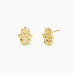 Descrizione: Orecchini in argento 925 e placcato oro 18K 10x12 mm hamsa con zirconi fi 1.3 mm