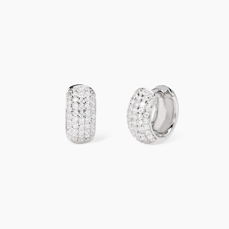 Descrizione: Orecchini a cerchio in argento 925 rodiato con zirconi fi 1.4 mm, fi esterno 13.4 mm, interno 9 mm, larghezza totale orecchino 6.3 mm